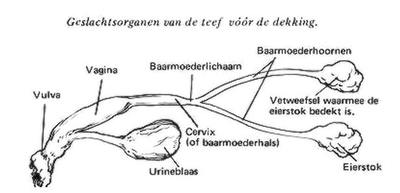 De bevruchting vindt plaats in de eileiders die de baarmoeder met de eierstokken verbindt. De baarmoeder van de hond bestaat uit twee lange gekronkelde buizen die baarmoederhoorns worden genoemd en uit een gemeenschappelijk stuk met een gemeenschappelijke uitgang naar de schede.