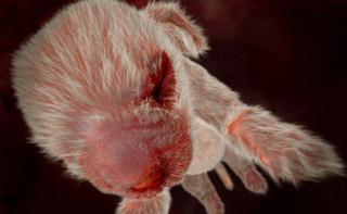 Dit is de laatste week van de dracht en is behoorlijk zwaar voor de teef. Vanaf dag 57 kunnen ze worden geboren zonder problemen. Hieronder een foto van een foetus van 60 dagen oud.